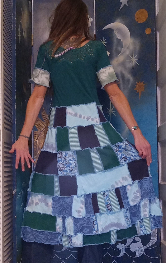 Where Ice Blue Roses Grow Patchwork Tie Dye Eco DressRegular price $137.00 USDRegular priceUnit price per-