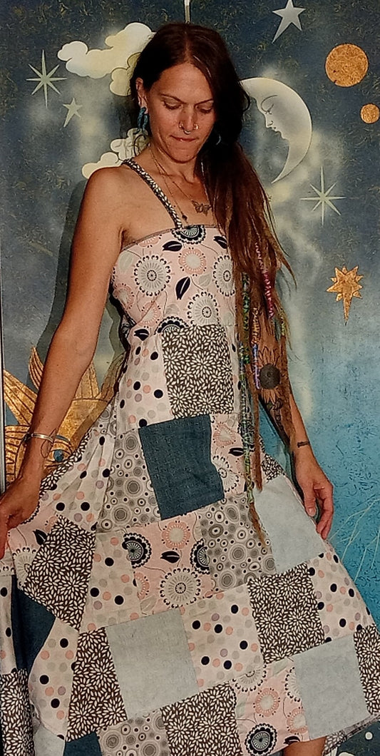 Cosmic Traveler Patchwork Open Back Lace Up Eco DressRegular price $127.00 USDRegular priceUnit price per-