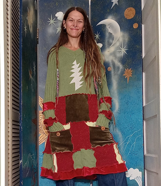 Grateful Dead Sparkly Patchwork Eco Velour Sweater Dress with PocketsRegular price $159.00 USDRegular priceUnit price per